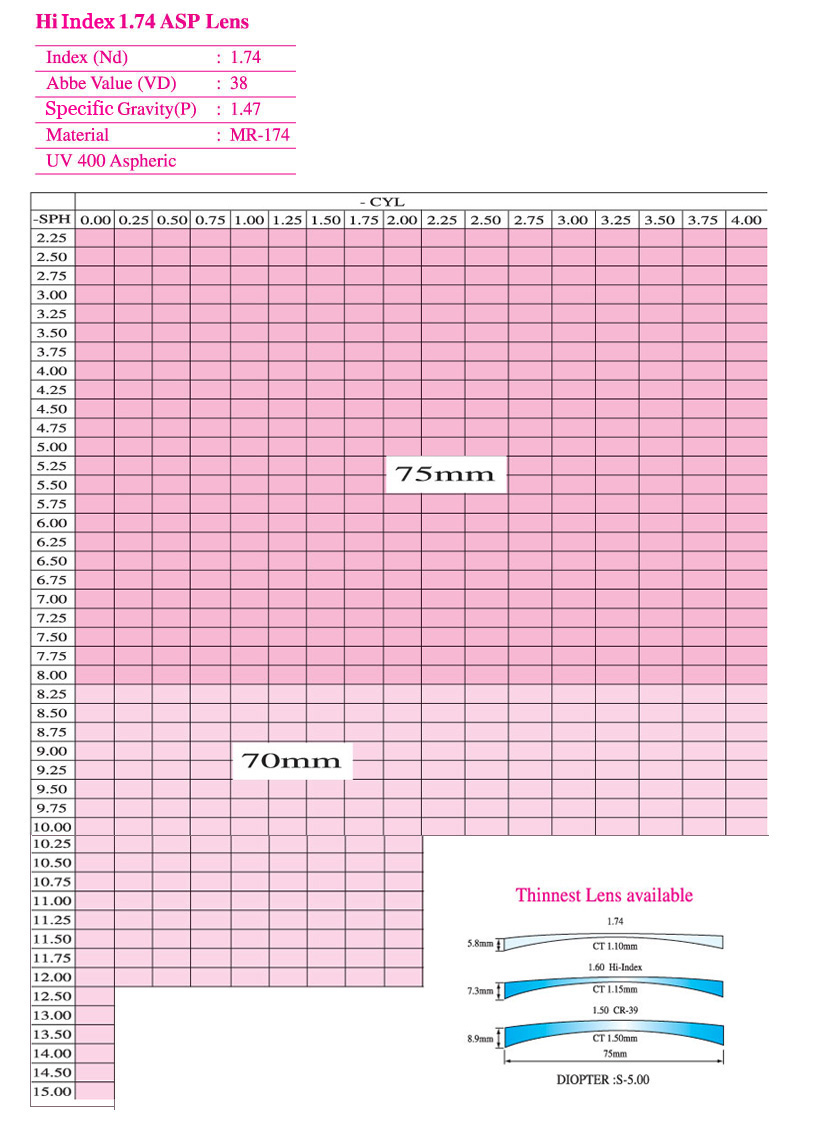 1.74 高折射率非球面镜片